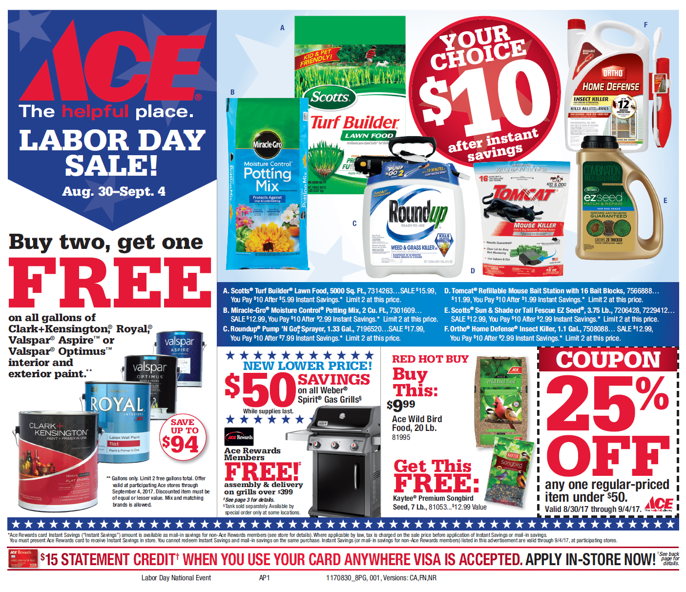 Visit Walsh's Ace Hardware in RC, Muscoda, Portage, or Ace of La Crosse during our Labor Day sale - August 30th through September 4th!
